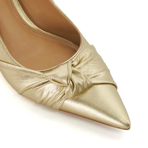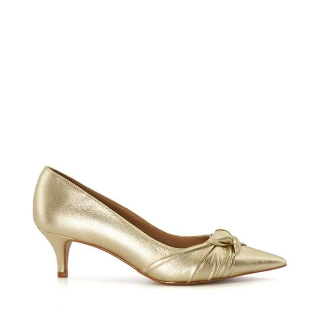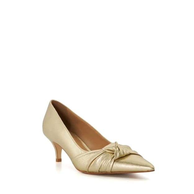Classic courts are a Dune London signature. Crafted from the finest metallic leather, the upper of this point-toed silhouette is enhanced with twisted detailing. Set on a kitten heel for ease of wear, this standout style will take occasion dressing to the next level.