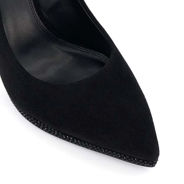 Step into high-octane glamour with our statement-making Appleton courts. Crafted from faux suede, this point-toed silhouette takes a Dune London signature and elevates the look with trend-led diamante trims. Set on a stiletto heel that rises to a flattering 10cm in height, this standout style culminates with a lined footbed and concealed 2cm platform for added comfort and ease of wear.