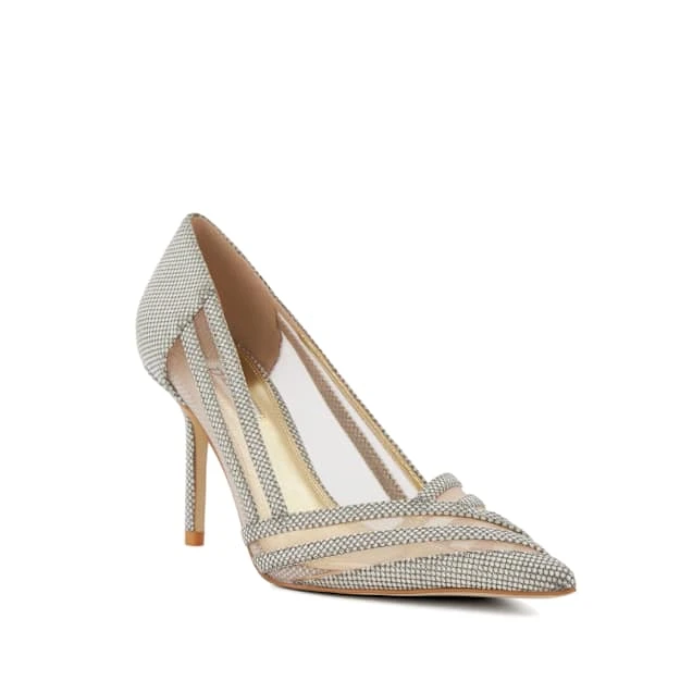 Axis takes the classic court heel and enhances the point-toed silhouette with a trend-led combination of asymmetric mesh panels and diamante embellishments that sparkle with every step. A standout style, Axis is certain to become the focal point of your occasion dressing.