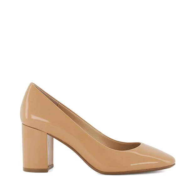 Chic and classic courts like Border are a Dune London signature. Set on a block heel for ease of wear, this nude round-toed silhouette boasts a glossy patent finish that’s certain to update your desk-to-dinner ensembles. Finished with a padded footbed for added comfort, this perennial favourite will last for seasons to come.