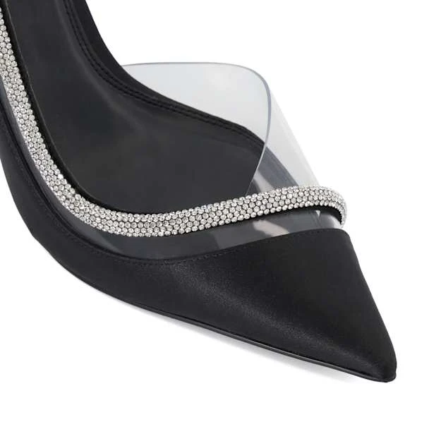 Evoke high-octane glamour with our standout Carabella courts. Crafted from a scene-stealing combination of the smoothest satin and see-through vinyl, this point-toed silhouette dazzles with captivating diamante embellishments that sparkle with every step. Finished with a lined footbed for added comfort, Carabella is the perfect blend of luxury and refinement, making them ideal for taking occasion dressing to the next level.