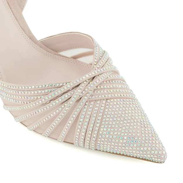 Embellishments were one of last season’s biggest trends, with no signs of stopping into the next. Enhancing its point-toed silhouette with a captivating combination of mesh and diamante-embellished straps that sparkle with every step towards the next occasion, Cloudia is an ultra-glamourous take on the classic slingback court. Set on a flared stiletto heel, the buckle closure ensures a comfortable fit.