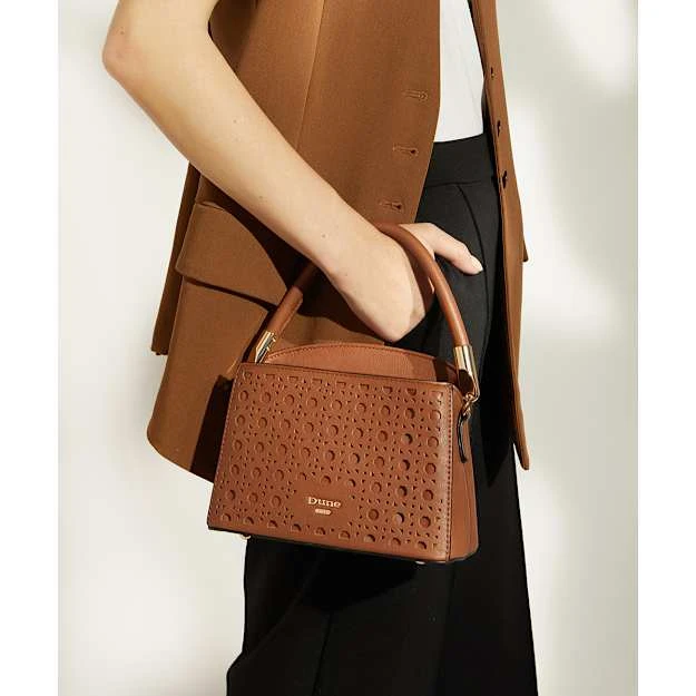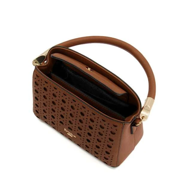 Refresh your daytime look with Delainy. Designed in-house, this small, structured bag has a top handle and laser-cut detailing at the front, with polished hardware trims that are engraved with our signature logo, instantly refining the look. Complete with a top handle, the interior is split into two separate compartments, helping to organize your belongings.