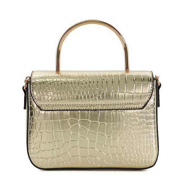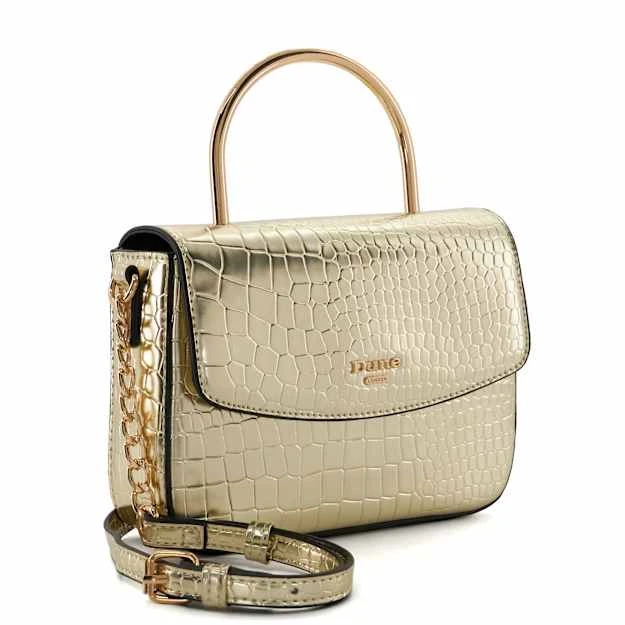 Hold onto one of the season’s biggest trends with Diisco and take occasion dressing to the next level. Boasting a chic croc effect, this metallic grab bag features our signature log and culminates with a metal top handle, magnetic closure to secure your belongings, and an optional chain-trimmed crossbody strap for ease of wear and versatile styling. The interior houses our bespoke ‘DD’-interlock-branded jacquard lining and a side pocket for organised storage.