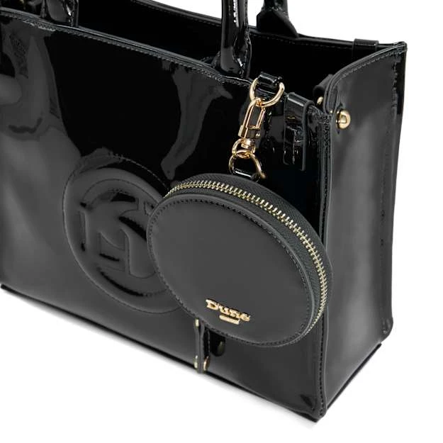 Update your everyday edit with our small Dinkydexter tote bag. In a glossy patent finish, this structured signature style is detailed with a removable pouch for organised storage and boasts our bespoke ‘DD’-interlock-branded embossing for an elevated look. Finished with a magnetic top closure and an optional strap for versatile styling and ease of wear, the interior houses our signature jacquard lining and a side zip pocket.