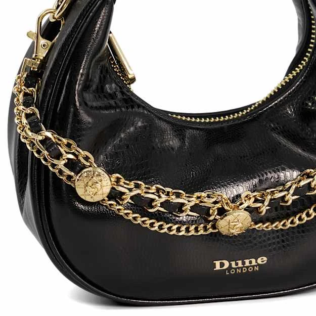 Elevate your edit with our crescent-shaped Dressings grab. Featuring our signature logo and detailed with a fastened top handle, this small design boasts a scene-stealing combination of detachable small, thread-through and branded-coin chains that are certain to take your everyday styling to the next level. Culminating with a top zip closure, the interior of this trend-led silhouette houses a side pocket for organised storage and our ‘DD’-interlock jacquard lining.