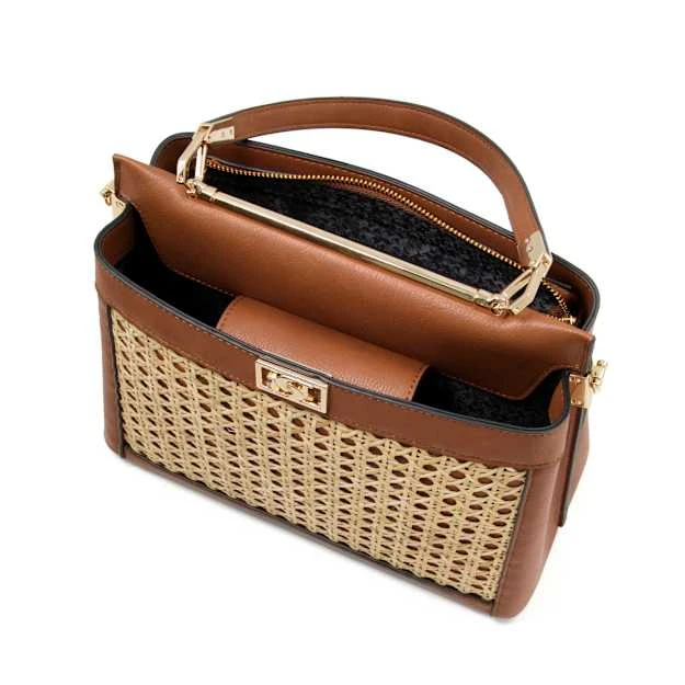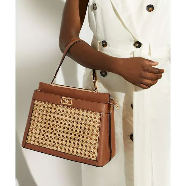 Warmer weather is calling for Ducier. Designed in-house, this large rattan tote bag has a top handle and secure magnetic closure. Refined with polished metal hardware trims, the interior is constructed with two lined compartments to keep your daily essentials organized. Complete with a removable cross-body strap.