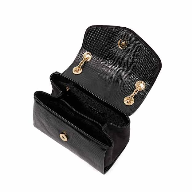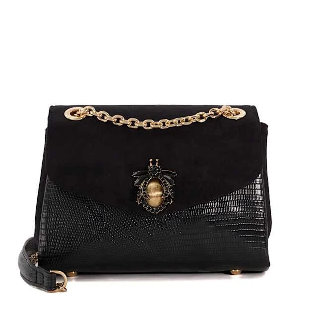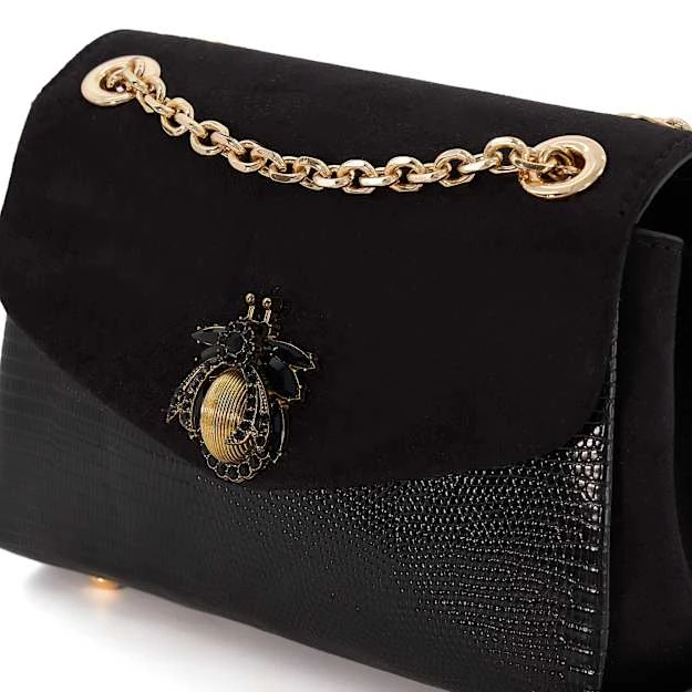 Elevate your bag edit with standout style, Dusk. Boasting a reptile-embossed finish, complemented with a drench bug-jewel embellishment and culminating with an adjustable metal chain strap for ease of wear and versatile styling, this scene-stealing clutch features a metal trim and a magnetic closure to safely secure your belongings while the interior is split into two separate compartments and is detailed with our bespoke ‘DD’-interlock jacquard lining and a zipped side pocket.