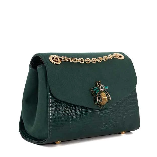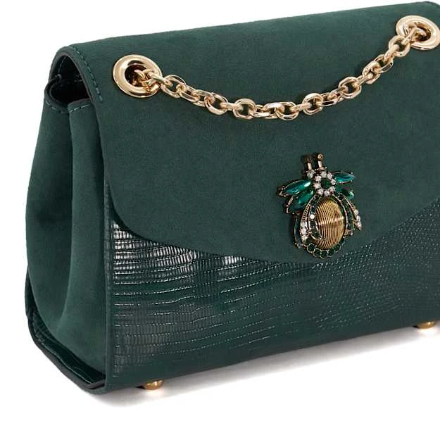 Elevate your bag edit with standout style, Dusk. Boasting a reptile-embossed finish, complemented with a drench bug-jewel embellishment and culminating with an adjustable metal chain strap for ease of wear and versatile styling, this scene-stealing clutch features a metal trim and a magnetic closure to safely secure your belongings while the interior is split into two separate compartments and is detailed with our bespoke ‘DD’-interlock jacquard lining and a zipped side pocket.