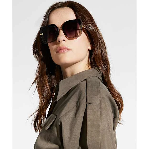 Summer in style with these oversized sunglasses, featuring a two-tone design and glamorous square lenses. We’ve also included a protective case to help keep them safe on your travels. Category 3 UV protection. Made from recycled materials and sold in a recycled PU case.