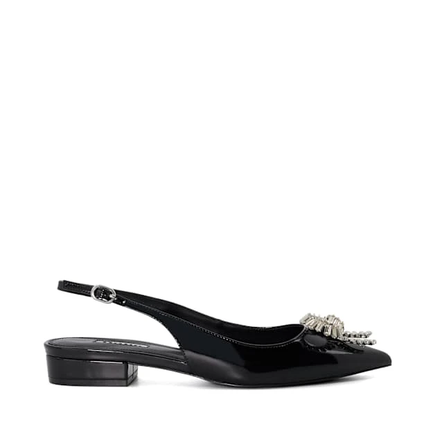 The season’s key silhouette, elevate your ensembles with our standout Happiest ballet pumps. In a glossy patent finish, this point-toed silhouette features a large diamante-embellished bow that’s certain to take your lineup to new heights. Set on a low block heel for added height and ease of wear, and finished with a buckled slingback for a comfortable fit, this scene-stealing style is certain to sparkle with every step. Team yours with our matching Bowley bag.