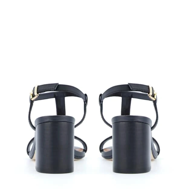Ready to feel the sun on your skin?. This feminine Summer profile features slim ankle straps and block heel. What really sets it apart is the bespoke hardware chain detail.
