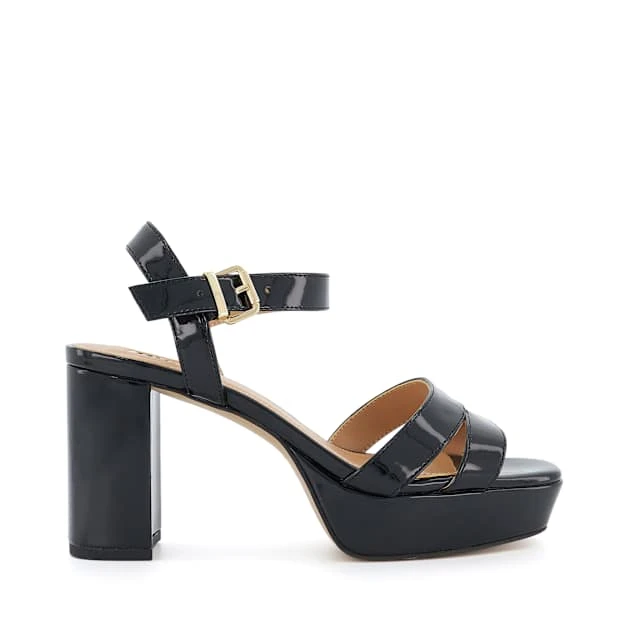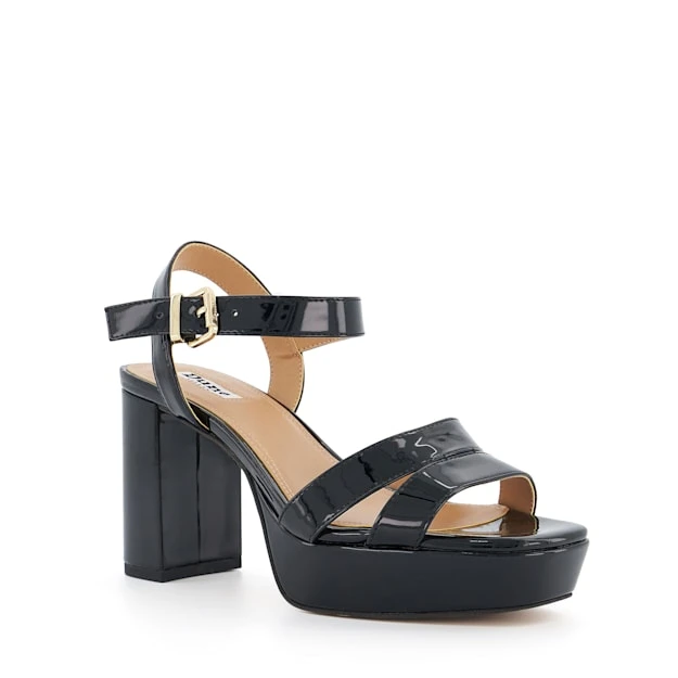 Evoke 70s styling with our patent Molten sandals. The upper of this square-toed silhouette culminates with two interlinking straps and a buckled ankle strap that offers dimension and support. Set on a chunky platform sole and a mid-block heel for ease of wear, Molten partners perfectly with everyday denim and sundresses, alike.
