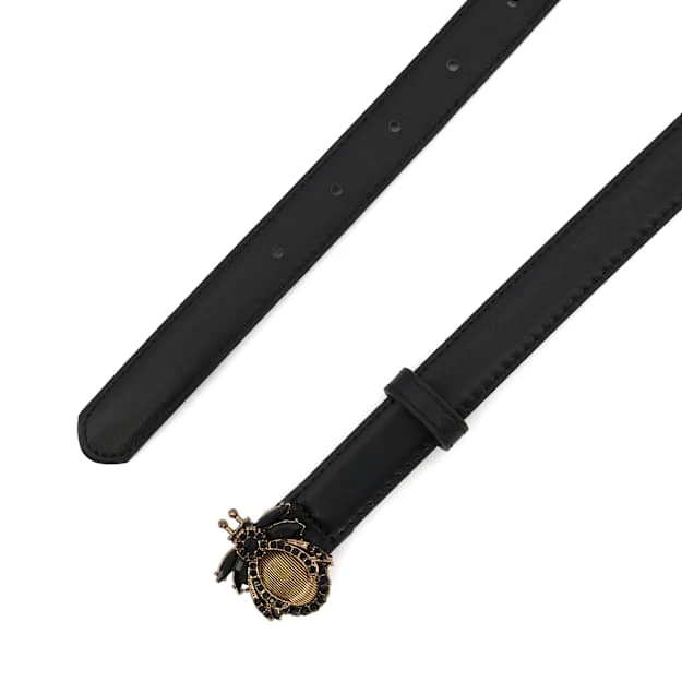 Elevate your styling with our standout belt, Nyree. Crafted from the finest leather, this scene-stealing accessory boasts a drench-bug brooch that’s certain to become the focal point of your everyday ensembles. Finished with a metal buckle, be sure to tuck in your shirts, and give Nyree the limelight that is well deserved.