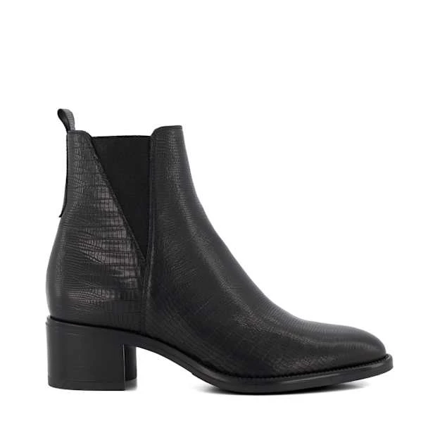 Elevate your everyday edit with our Pouring ankle boots. Crafted from the finest leather, this point-toed silhouette culminates with a back pull tab, is detailed with elasticated sides, and boasts chic reptile debossing at the back. Set on a block heel for ease of wear, Pouring is certain to update your casual ensembles.