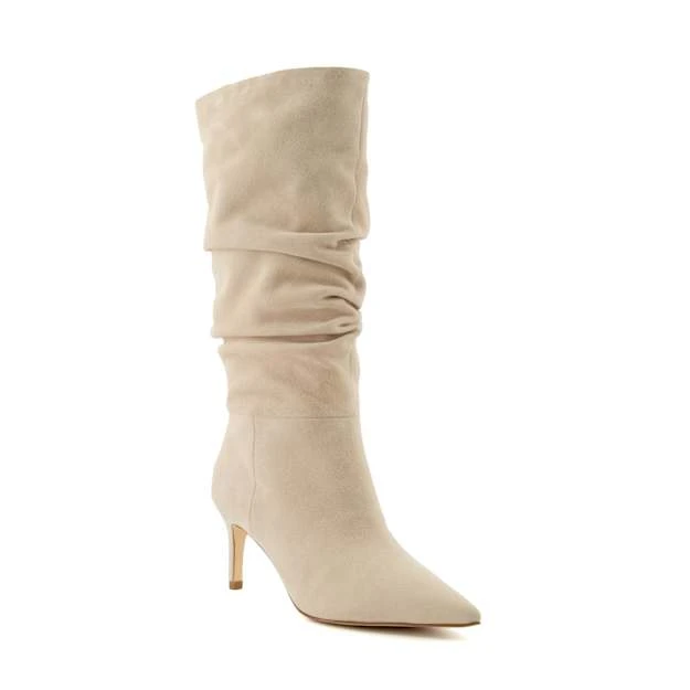 Refresh your edit with our pull-on boot, Slouch. Resting at the calf and crafted from the finest suede, this statement-making style is enhanced with a slouchy fit. Set on a flattering stiletto heel, this point-toed silhouette will take cold-weather styling to the next level.