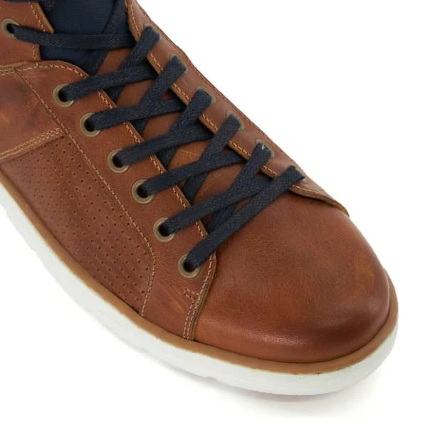 Our Southern trainers are the epitome of laid-back luxury. Crafted from the finest Portuguese leather, this round-toed silhouette is intricately detailed with perforated and textured panels and features a cushioned ankle and treaded sole for added comfort. Finished with a waxed-lace-up closure, and enhanced with metal hardware trims, Southern is certain to add a touch of sophistication to your everyday looks.