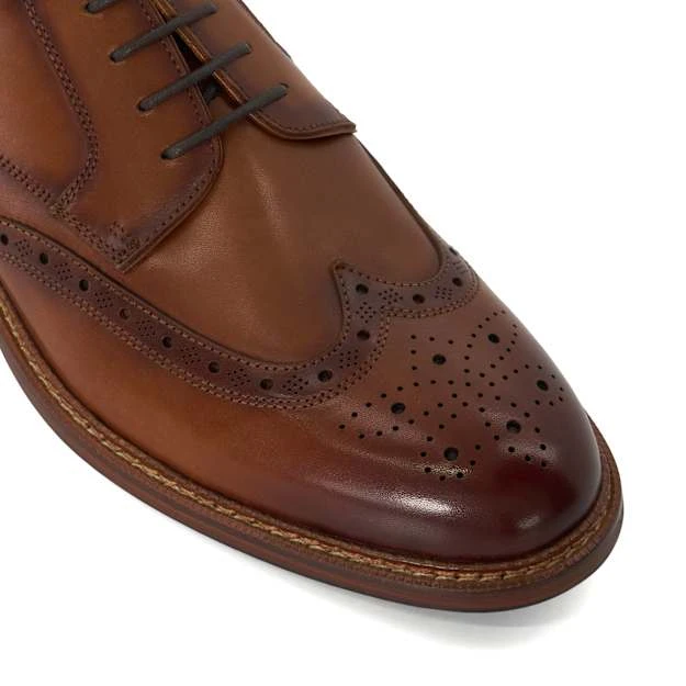 Embrace classic styling with our traditional wing-tip brogue. The brogue detailing and burnished toe lifts this otherwise minimalist style, making it more versatile for both sartorial and semi-formal occasions. Crafted from the finest leather, and made to last, our Spenccer profile features a four-eyelet-lacing system, has stitch details and is set on a wood veneer sole.
