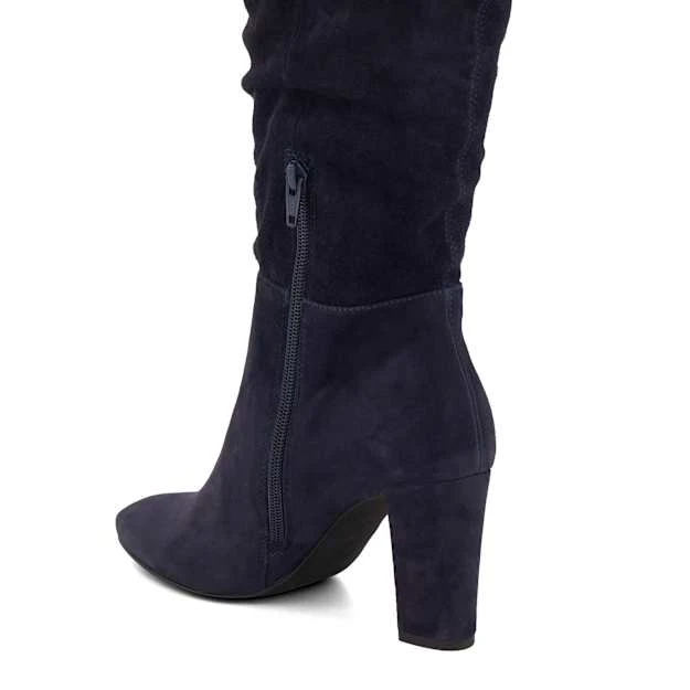 Tap into one of the season’s biggest trends with ruched knee-high boot, Stigma. Crafted from the finest suede, this almond-toed silhouette is set on a block heel for ease of wear. Finished with a side zip, Stigma is an effortless addition to autumn styling.