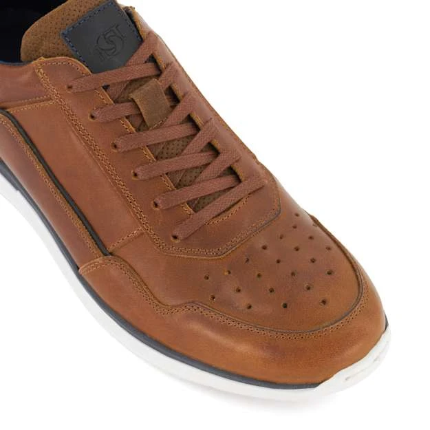 Keep your leisurewear fresh this season with lace-up runner sneaker, Tristan. Crafted from the finest leather and accented with tonal topstitching and panels, along with contrasting pipe trims sporty perforated finishes. Set on a rubber sole, this style is sure to put a spring in your step.